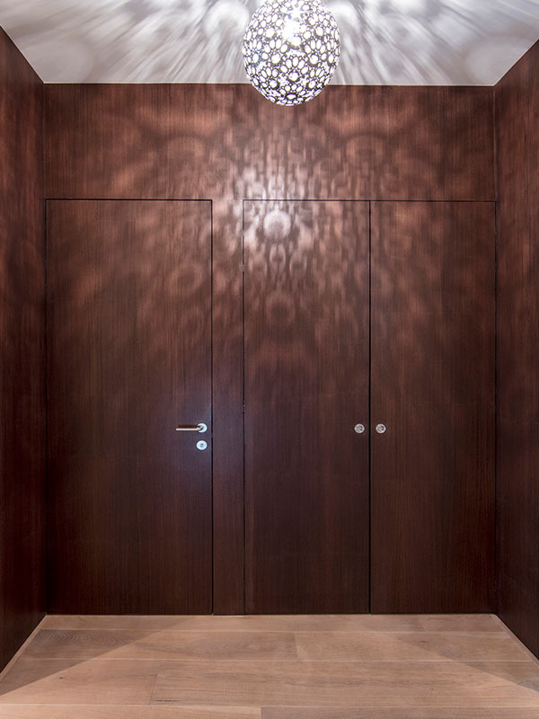 - درب چوبی فریم لس بدون چهارچوب و قاب است و به دلیل این که کاملا با سطح دیوار همتراز می شود جلوه بصری مدرن، زیبا، لوکس و یکپارچه ای دارد.